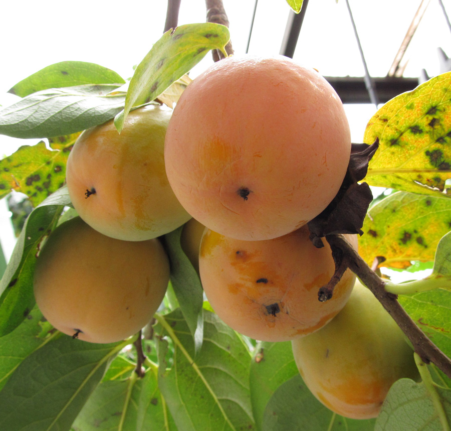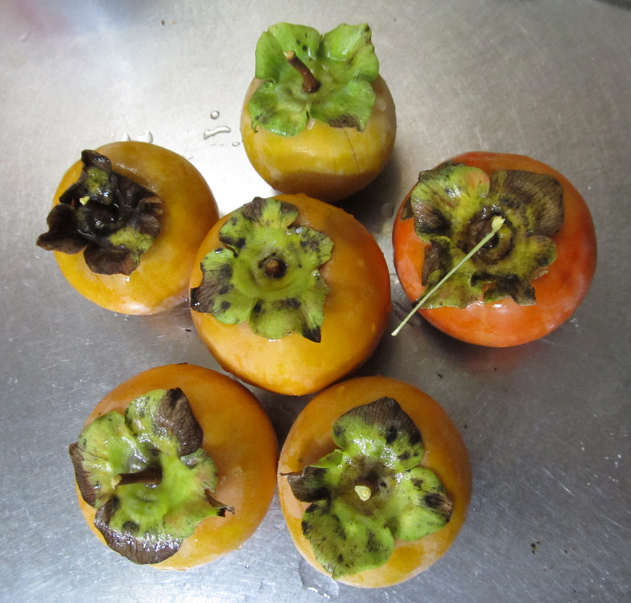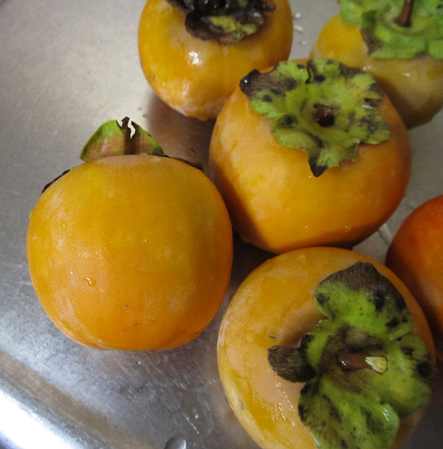 この家に引っ越して来る前から、この柿の木はありました。 前に住んでいた方が植えたそうです。 ご本人曰く「あまり美味しくないよ。」 でも、次の年に成った柿の実は甘かったです。 ただ、気がつくと萎んでしまっているので、 この頃はこの木の実を食べてはいませんでした。 あまりにも大きくなってしまった柿の木を、一度小さく切りました。 でも、今また素晴らしく大きくなってしまっております。 主人が気が向くと切ってくれるのですが、 成長の方が早くて、とても追いつかないです。 一昨年、主人の気が向いたのが ちょうど柿の実が成って少し経ってからでした。 なんとなく赤くなった実を拾ってかじってはみたものの、 えらく渋くてとても食べられませんでした。 ええええ~?こんなに渋かったっけ? 甘いと思ったのは錯覚だったのか? ちゃんと食べたのは、もう何年も前でしたから。 結構、鮮烈な刺激でした(^◇^;) 一昨年の夏、主人の両親が近くに越してきました。 母は庭仕事が好きなので、 うちの庭で草取りをしたり、 好きな花を植えたり、 もう植えてあるバラの木などの面倒をみてくれたりしています。 つい最近、この柿の木の枝を切ってくれました。 その母が、 「今年、柿すごく成ってるよ。もう食べた?」 と訊くので、 「食べてない。だってぇ、渋いんだもん。」 と答えると、 「えっ、渋いの?じゃあ、軒下に吊しておけばいいかなぁ。」 と言うので、 「なら、いいかもー むしって持って行ってー。」 と言うと、 「二つだけ試しに持って行くー。」 と、2つもいで持って帰りました。 が、夕方再び来ると、 「甘いよ!あれ!食べてみ!」 「まじで?」 (実の母ではありません。あくまでも主人の母。 のわりに、この言葉遣い(^◇^;)) 食べてみると、本当に甘かったです。 多少青くても、です。 しかし、お母さん、あれを食べたのか?(^0^;) 本当に渋かったらどうするよ? うちには生ゴミ処理機があって、 それでできた物を肥料として置いてあります。 母曰く「柿の木の根元に沢山撒いておいた。」そうです。 落ち葉を根元に集めて置いたりもしたので、 それで甘くなったのでしょうか。 今年の柿は甘いと聞いた主人曰く 「根元に何体か埋めておいた効果が出たか。」 何体かって、何をよ・・・? そんなん、どっから持ってきたのよ?(^◇^;) でも、それってさ、 埋めておいた物体が、タンパク質と水分とかでできた物体がこー・・ 腐って、土に溶け出して、それを柿の木が吸って、 まんべんなく自分の体に送り出して、 そして、自分の子孫を残すために実に集めて、 それを私が食った、ということで・・・ ・・・・ ・・・・・ 深くは考えないようにしよう。 美味かったので、よしとしよう。 (いやいや、実際は肥料しか埋まってませんよ(^◇^;)) ・・・川原泉先生の漫画、思い出しちゃった(..;) あれは、桃だったっけ。 最後に、今さっきむしってきた柿の写真を載せておきます。 殺虫も殺菌もしていないので、ヘタも葉っぱも綺麗じゃないけれども、 買ったのより甘いかも。 PR