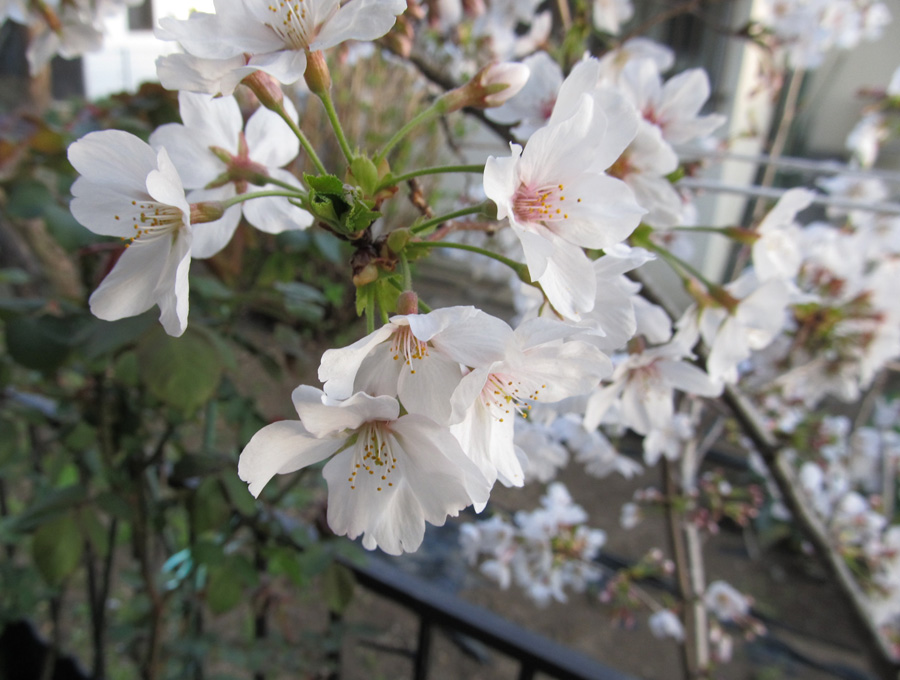 少し手直ししました。 彼女は、今は亡き『吉野しだれ』姫です(T-T) 去年の暑さと虫にやられてしまいました。 しだれの桜姫が綺麗だと思ったのは、 三春の滝桜を見てからでしょうか。 1000年も同じ所に立っていて、 どんなものを見てきたのだろうと思いを馳せます。 そして、沢山の補助支材が彼女を支えてました。 人が手をかけることによって、 1000年以上長らえていくのだ、と。 それが、三春の滝桜にとって、 幸せなのかはわかりません。 主人は、木は何も考えてないよ、と言いますが。 考えていても、ゆっくり時が経つから、 目を覚ますと、何十年、何百年経ってるんだよ、と言います。 そうかもしれないし、そうじゃないかもしれない。 でも、私は1000年も同じ景色を見ているのは退屈かな。 花だけ見ると、やはり染井吉野に似てますね。